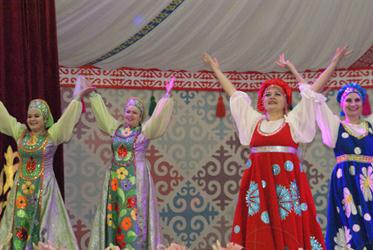 После официальной части торжества состоялся праздничный концерт, в котором приняла участие творческая группа из Байконура - ансамбль народно-сценического танца "Русские самоцветы". Кызылординцы тепло встретили самодеятельных артистов, сопровождая их выступление бурными аплодисментами.