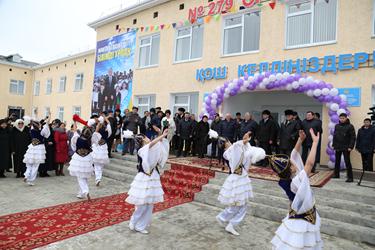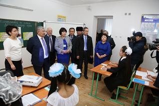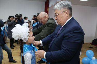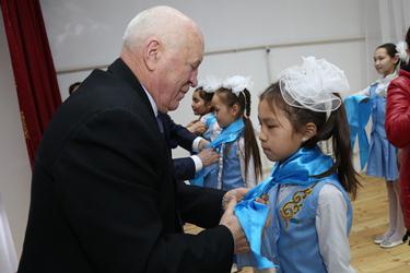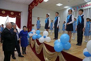 В ходе визита официальные лица прошлись по школе, осмотрели учебные классы, пообщались с учениками. В актовом зале лучшие воспитанники школы были торжественно приняты в ряды "Жас улан". Гости повязали ребятам символичные галстуки и пожелали им успехов в учебе и дальнейших достижений.