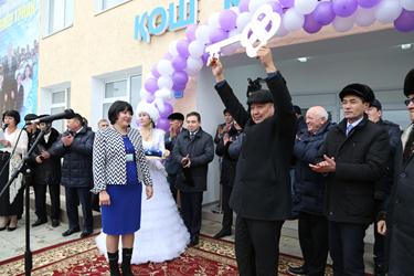 Анатолий Петренко и Крымбек Кушербаев перерезали символическую ленточку на входе в школу. На открытии школы, приуроченном ко Дню Независимости Республики Казахстан, побывали специальный представитель Президента Республики Казахстан на комплексе «Байконур» Серик Кожаниязов, а также руководители областного и районного департаментов образования и другие официальные лица. Гости обратились к руководству учебного заведения с напутствиями и добрыми пожеланиями в адрес школы и её учеников и вручили символический ключ от новой школы. А.Петренко передал в дар школе DVD-проигрыватель с акустической системой.