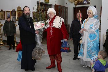 Затем Сергей Рычков побывал в храме святого Георгия Победоносца, где вручил протоиерею отцу Сергию живую вологодскую елку, поздравил детей воскресной школы с наступающим Новым годом и передал им подарки. Отец Сергий поблагодарил Сергея Рычкова за то, что несколько лет назад он написал статью в газету «Комсомольская правда» о том, что строящемуся храму нужна настоящая колокольня и на его призыв откликнулись металлурги Челябинска и помогли в литье колоколов.