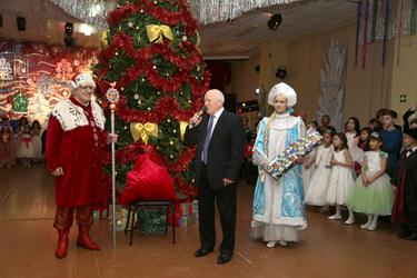 Кроме того, посланник Деда Мороза побывал на новогоднем представлении в Городском Дворце культуры, где встретился с детьми из многодетных семей и вручил им заветные подарки от Дедушки Мороза.
