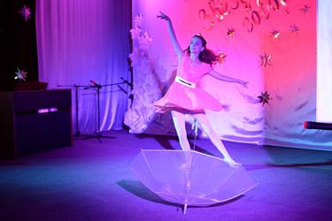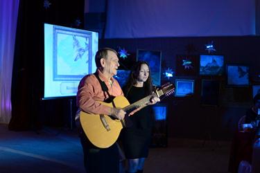 Выставка в формате перформанс (перфо́манс, англ. performance — креативное, оригинальное исполнение, представление, выступление) проходила в нашем городе впервые. Картины проецировались на экран под инструментальную музыку Г.Балуева «Звездная россыпь». Картины «Дорога к солнцу», «Дуновение ветра», «Лунная поляна», «Волшебный сон» были показаны под песню «Маленький принц» в исполнении солистки ГДК Оксаны Сливиной. Вокальный ансамбль ДМШ № 2 (концертмейстер И.Тогаева, аранжировка и партия скрипки Т.Платонова) подарили гостям вечера песню «Снег». Во время выступления солистки ГДК Розы Рзаевой с песней «Адажио» (музыка Тосканини, соло на саксофоне В.Ким) на экране демонстрировались картины «Счастье для двоих», «Гори моя звезда», «Музыка ночи», раскрывающие вечную тему любви и счастья. Также порадовал зрителей танец «Я и ты» в исполнении воспитанников танцевально-спортивного клуба «Космодром» Алексея Филь и Сабины Мамедовой. Не оставила равнодушным гостей песня Александра Каракозиди «Звёздный художник».