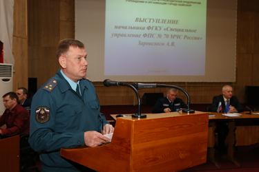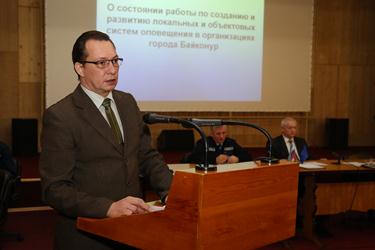 Затем сборы перешли в деловую фазу. В докладе, посвященном вопросам функционирования системы предупреждения и ликвидации ЧС на территории Байконура, Николай Авдеев отметил, что работа по созданию СПЛЧС была начата еще в 2012 году и в настоящий момент активно продолжается. «Это кропотливая по своей сути и продолжительная по времени деятельность, которая будет требовать постоянного внимания и ответственного отношения ото всех участников процесса», - подчеркнул он. Говоря о работе в 2015 году, Николай Авдеев отметил, что минувший год был насыщен различными событиями, которые прямо или косвенно отразились на общей работе. «Нами уделялось особое внимание вопросам совершенствования форм и способов работы органов управления, уполномоченных на решение задач в области защиты от ЧС. Приоритетным направлением работы было обучение населения в области гражданской защиты. Большое внимание уделялось информированию населения по вопросам, связанным с правильными и умелыми действиями при угрозе возникновения ЧС. С этой целью широко применялись средства массовой информации, возможности интернета. За прошедший период дважды проводилась общегородская тренировка действий по сигналу «Внимания всем!», что позволило закрепить полученные ранее населением города навыки правильных действий в чрезвычайных ситуациях. Впервые нами были организованы и проведены общегородские месячники по пожарной безопасности и гражданской обороне. Считаем, что эти мероприятия позволили активизировать работу по созданию безопасной среды обитания для жителей и гостей города», - сказал руководитель администрации.
