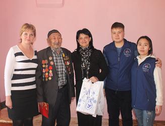 Накануне празднования Дня защитника Отечества начальник отдела молодежной политики УКМПТиС Т.Сафронова, председатель совета по работе с молодежью профсоюзного комитета филиала ФГУП «ЦЭНКИ» - КЦ «Южный» Т.Зимовец и волонтеры Центра поддержки молодежных инициатив «Звездный кампус» посетили на дому ветерана Великой Отечественной войны Калмурзу Жарманова.
