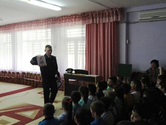 В ходе занятия инспектор ОГИБДД напомнил детям, как правильно переходить дорогу по пешеходному переходу, по какой причине дети обязательно должны быть пристегнуты в автомобиле с помощью детского удерживающего устройства и о правилах езды на велосипеде.