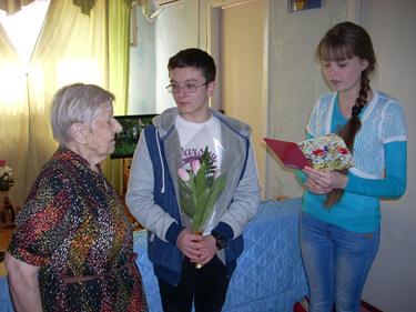 Женщина-ветеран с радостью встретила ребят, поблагодарила их за оказанное ей внимание со стороны молодежи города.