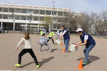 28 марта на стадионе средней школы №10, в рамках реализации городской целевой программы «Профилактика преступлений и правонарушений на территории города Байконур на 2016‑2020 гг.», с целью организации досуга детей и подростков во время весенних школьных каникул, волонтеры Центра поддержки молодежных инициатив «Звездный кампус» провели физкультурно-развлекательную программу «Готовимся в отряд космонавтов».