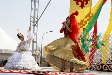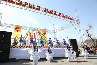 Перед началом праздника глашатаи верхом на конях зазывали народ на гуляние. Воспитанники коллектива современного танца «Престо» Городского Дворца культуры открыли мероприятие казахским танцем и осыпали гостей праздника конфетами, совершая обряд «Шашу», символизирующий достаток в доме.