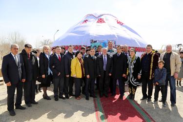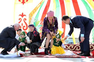 Семьи Нурлыбековых, Куандыковых и Каумбаевых отмечали двойной праздник. В этот день их дети должны были сделать первый шаг после обряда «Тусау кесу» – обрезание пут у ребенка. Право дать «путевку в жизнь» было предоставлено самым почетным гостям – Главе города А.Петренко, специальному представителю Президента Республики Казахстан на комплексе «Байконур» С.Кожаниязову, а также акиму Кармакчинского района С.Макашеву. Почетные гости праздника перерезали путы, вручили детям игрушки и пожелали им, чтобы они выросли достойными гражданами своей страны.