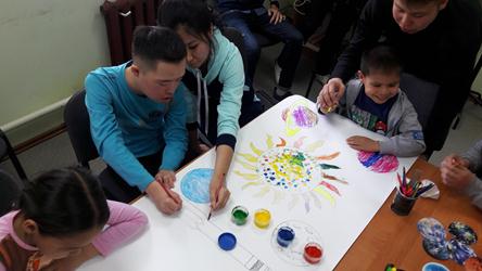 Ярким завершением космической темы стало изготовление большого панно «Необъятный космос», которое ребятам помогли сделать студенты байконурского электрорадиотехнического техникума совместно с волонтерами «Звездного кампуса». Уникальность панно в том, что абсолютно каждый ребенок с помощью цветной бумаги, фольги и пальчиковых красок, смог внести в общую картину свой особый космический элемент.
