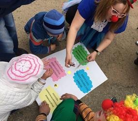 Не осталась в стороне и тема космоса. В преддверии празднования 55‑летия первого полета человека в космос, ребята вместе с волонтерами «Звездного кампуса» подготовили зажигательный флешмоб и изготовили для него множество разноцветных звезд. Все они ярко засияли на их футболках во время выступления на городском фестивале «Забава». А клоуны социального проекта «Больничная клоунада», которые пригласили ребят на празднование своего Дня рождения, научили своих маленьких гостей делать из длинных шаров необычные «межгалактические мечи», прикосновение которых, делает человека добрее.
