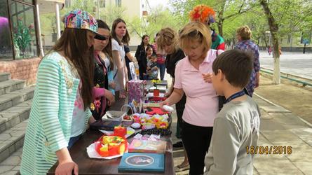 Открытие Весенней Недели Добра состоялось 16 апреля благотворительной акцией «Ярмарка арт-сладостей», которая проходила на Арбате перед кофейней «Звездное небо». Все представленные на ярмарке работы были выполнены руками мастериц нашего города, волонтерами и руководителем кружка «Мир увлечений» Центральной городской библиотеки В.Мещеряковой, которая совместно с детьми с ограниченными возможностями здоровья – воспитанниками кружка, сделала для ярмарки «аппетитные тортики с сюрпризом» из цветной бумаги, пончики‑игольницы, яркие шкатулки-подсолнухи. А пока шла распродажа сувениров, участниками социального проекта «Больничная клоунада» для маленьких байконурцев был организован небольшой праздник с разноцветным парашютом и веселыми играми. Все вырученные от продажи деньги были направлены в благотворительный Фонд "БлагоДари" для социокультурной реабилитации детей с ограниченными возможностями здоровья.