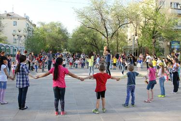 Силами студентов МАИ, а именно участниками добровольческого движения «Молодой Байконур» и членами студенческого совета, была проведена, ставшая уже традиционной, акция «Подари улыбку другу», которая прошла на Арбате в виде веселого праздника для городской детворы.