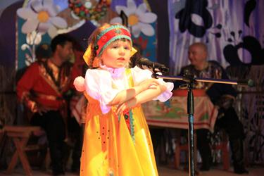 В театрализованной концертной программе нашли отражении все лучшие качества русского народа – гостеприимство, дружелюбие, любовь к своей земле, широта души, задор. Сценические герои побывали в гостях у тети Кати, роль которой исполнила Арина Бобкова. Вместе с ней дети колядовали, пекли блины, водили хороводы, завивали березу и плели венки, играли шутейную свадьбу.