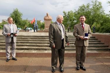 Затем состоялась церемония присвоения звания «Почетный гражданин города Байконур». Заместитель Главы администрации Николай Адасев огласил Постановления Главы о присвоении звания «Почетный гражданин города Байконур» генеральному конструктору, экс-президенту Ракетно‑космической корпорации «Энергия» им. С.П.Королева Юрию Семенову и ветерану Великой Отечественной войны Калмырзе Жарманову. Атрибуты почетного звания, присвоенного Юрию Семенову, были вручены руководителю филиала «Байконур» РКК «Энергия» Леониду Баранову для передачи Ю.Семенову, который по состоянию здоровья не смог приехать на Байконур.