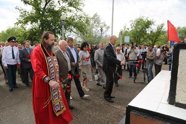 В мемориале погибшим ракетчикам были возложены цветы к обелискам и братским могилам в дань памяти первопроходцам космодрома.