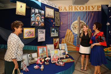 В музее истории космодрома Байконур к празднику оформлена выставка «Космонавтика в марках, значках, конвертах и других носителях символики».