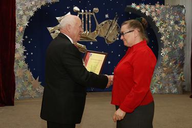 В малом зале ГДК состоялось чествование педагогов и руководителей творческих коллективов, победивших в конкурсах и фестивалях. За активное участие в культурной жизни Байконура они были награждены почетными грамотами Главы администрации города Байконур. Среди награжденных - директора и преподаватели общеобразовательных школ и учреждений дополнительного образования, детских музыкальных школ, руководители танцевальных коллективов.
