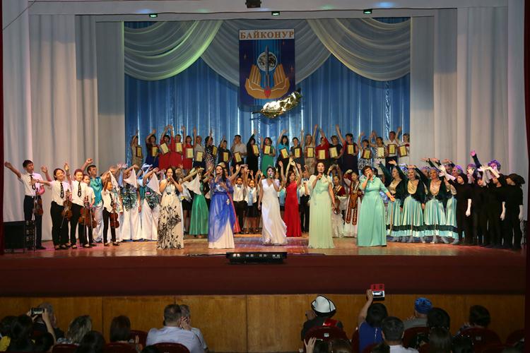 После завершения официальной части торжества началась праздничная концертная программа, в которой приняли участие победители городских конкурсов и фестивалей. Среди них – хор старших классов и ансамбль скрипачей «Tutti» детской музыкальной школы №2, ансамбль народно‑сценического танца «Русские самоцветы», театр «Чеботушки» начальной школы №15, обладательница звания «Золотой голос Байконура», солистка Дворца культуры Роза Рзаева.