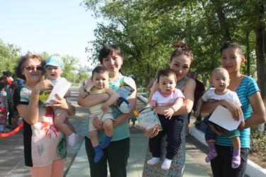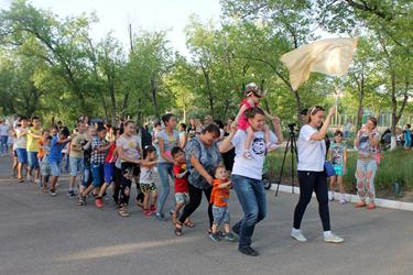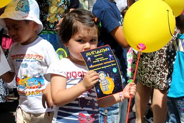 Вечерний блок праздничных мероприятий в парке начался с «Чемпионата ползунков» - соревнований для самых маленьких жителей Байконура. Под ободряющие возгласы взрослых, малыши соревновались в скорости ползания. Не обошлось без слез и маленьких неудач, но, несмотря на все трудности, каждый участник соревнований получил замечательный приз и первый в своей жизни диплом.