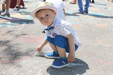 Затем в дело вступила команда Городского дворца культуры, предложив ребятам поучаствовать в конкурсе рисунков мелом на асфальте «Разукрасим всю планету». Буквально за несколько минут аллея парка превратилась в яркий ковер из причудливых рисунков. Юные художники старался передать в своих работах свои фантастические идеи. Организаторы конкурса вручили каждому участнику заслуженный подарок.