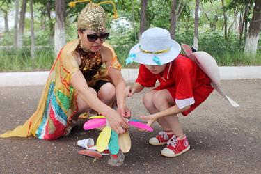 На танцевальной площадке парка развернулась игра «Космическое путешествие» для воспитанников детских подростковых клубов. По замыслу игры на сказочную страну Чудоландию напали космические пираты и отправили сказочных жителей на разные планеты. А вернуть их можно было только с помощью волшебного зеркала, которое было разбито и его осколки разлетелись по всей Галактике. Всем участникам программы предстояло, преодолев множество препятствий, найти осколки разбитого зеркала и проучить злых космических пиратов. Как и полагается в сказке, добро одержало победу над злом. Участники программы получили в подарок наборы для занятий творчеством от Управления культуры, молодежной политики, туризма и спорта.