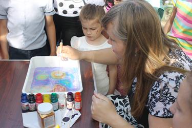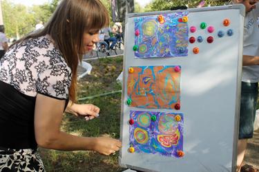 В различных уголках парка работали еще несколько творческих площадок, где ребята могли поиграть в «Космической песочнице», познакомиться с уникальной техникой рисования по воде «Эбру» и увидеть своими глазами как рождается невероятный художественный шедевр.