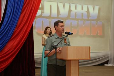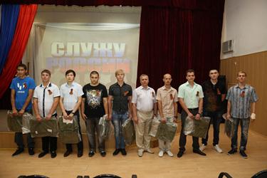 Патриотическая атмосфера проводов была поддержана тематическими видеороликами и песней «Служить России» в исполнении солиста Городского Дворца культуры Сергея Короляша.