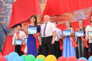 За успехи в учебе, высокие спортивные достижения и активное участие в культурной жизни города Байконур 100 выпускников общеобразовательных школ были награждены подарками от Главы городской администрации. Также подарками были отмечены 26 лучших выпускников детских музыкальных школ №1 и 2, Центра развития творчества детей и юношества.