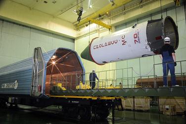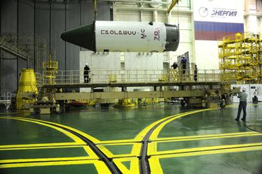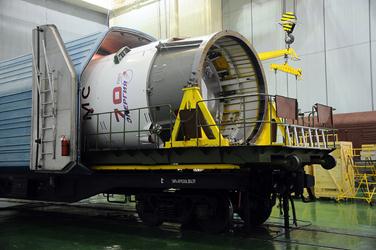 Транспортировка выполнялась железнодорожным транспортом. Комплекс технологических операций по общей сборке будет проведен в монтажно-испытательном корпусе ракет-носителей (МИК РН) в рамках подготовки к старту по программе Международной космической станции (МКС).