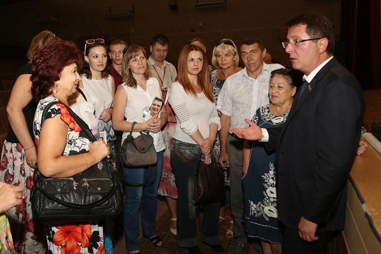 6 сентября в киноконцертном зале «Сатурн» состоялась встреча Сергея Жигарева с жителями города Байконур. На встрече также присутствовали Первый заместитель генерального директора - Статс-секретарь ОАО «ОРКК» Денис Кравченко, и.о. генерального директора ФГУП ЦЭНКИ Ранохон Джураева, заместитель Главы администрации города Байконур Николай Адасев, которые ответили на вопросы, интересующие байконурцев. Вопросы касались программы отселения граждан РФ на территорию России, процентной надбавки к пенсии военным пенсионерам, выезжающим на постоянное место жительство на территорию РФ, медицинского обслуживания горожан, низкой заработанной платы работникам ФМБА России, продления срока действия миграционных карт, развития туризма на Байконуре и других тем.