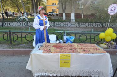 Сотрудники ГУП «Дом торговли» приняли участие в конкурсе на лучшее кондитерское изделие «Сластена». Они приготовили пиццу «Ассорти» размером 1,5 на 0,8 метра. После подведения итогов конкурса пиццей угостили всех желающих.