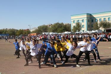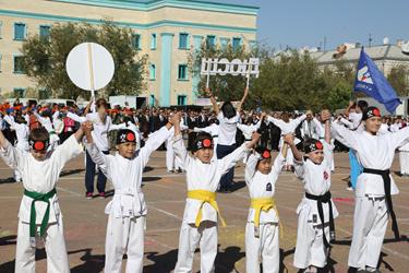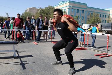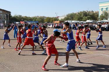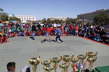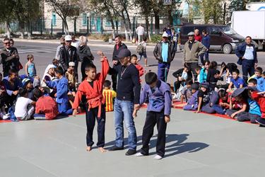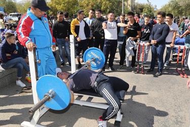 На празднике осени не приходилось скучать никому. На импровизированной спортивной площадке около памятника Ленину, отделом физической культуры и спорта Управления культуры были организованы спортивные состязания, в которых могли принять участие все желающие. Программа была разнообразной. Здесь проводились соревнования по национальной борьбе "Казакша корес", приседанию с грузом, жиму лежа, поднятию гири.