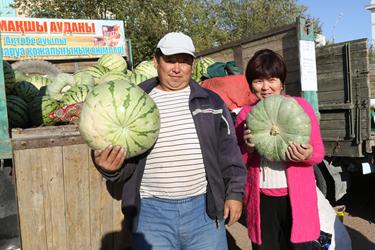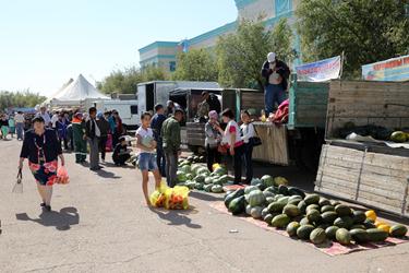 Производители Кызылординской области развернули на площади торговые ряды с сельскохозяйственной продукцией. На ярмарке присутствовало 18 предпринимателей города Байконур, 60 представителей из Кармакшинского района и поселка Тюратам. Общий объем продукции, представленной на ярмарке, составил около 100 тонн. Ярмарка была организована отделом торговли, потребительского рынка, защиты прав потребителей и развития малого и среднего предпринимательства администрации города Байконур.
