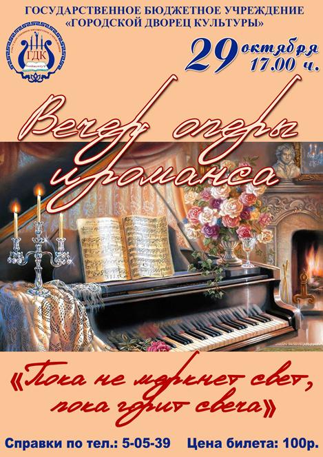 04.10.2016 - 29.10.2016  Вечер оперы и романса с участием артистов-вокалистов Городского Дворца культуры