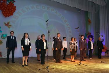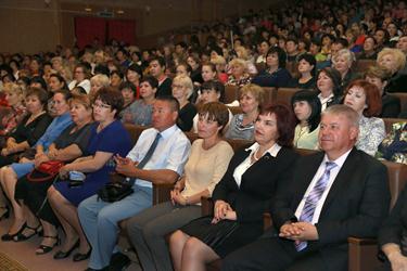 С приветственным словом и поздравлениями к педагогам обратились Глава администрации города Байконур Анатолий Петренко и начальник Управления образованием Галина Белова. В торжественной обстановке ряд сотрудников образовательных организаций был награжден грамотами Главы администрации и начальника Управления образованием за профессионализм, преданность делу и вклад в воспитание подрастающего поколения.