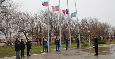 3 ноября на Байконуре в испытательном учебно-тренировочном комплексе НИИ ЦПК им. Ю.А.Гагарина состоялась церемония поднятия флагов стран, участвующих в запуске пилотируемого корабля «Союз МС‑03» и длительной экспедиции на МКС, которая знаменует собой начало заключительного этапа подготовки экипажей к космическому полёту.