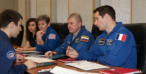 Космонавты РОСКОСМОСА Олег Новицкий и Фёдор Юрчихин, астронавты NASA Пегги Уитсон и Джек Фишер, астронавты ЕSА Тома Песке и Паоло Несполи провели открытые занятия по изучению бортовой документации и тренировки по ручному сближению корабля серии «Союз МС» с МКС на многоцелевом стенде. Также экипажи прошли подготовку к факторам космического полета на специальных тренажерах: на креслах ускорения Кориолиса и гемодинамические тренировки на ортостоле в соответствии с определенной схемой, разработанной ЦПК. Для максимальной адаптации организма к влиянию факторов космического полета, под наблюдением врачей, экипажи занимались общей физической подготовкой.