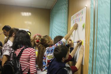 Но главный акцент в программе мероприятия был сделан на презентацию добровольческих проектов и акций, подготовленную волонтерами. Каждый из них представил свое направление деятельности, рассказал о достигнутых успехах и пригласил в свою дружную команду новобранцев. Так, волонтерами из социального проекта «Больничная клоунада», была представлена театрализованная сценка - «Один день из жизни Больничного Клоуна». Своим представлением ребята смогли зажечь всех присутствующих и, в итоге, набрали в свои ряды наибольшую группу желающих присоединиться к этому направлению волонтерской деятельности.