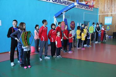 В начале мероприятия под музыкальную композицию «Спортивная семья» вышли восемь команд с эмблемами своих клубов. Оценивать состязания пригласили педагогов дополнительного образования Центра развития творчества - руководителя спортивной секции по карате-до Рустама Орлова и руководителя кружка «Кожаный мяч» Бакытбека Жанкуата.
