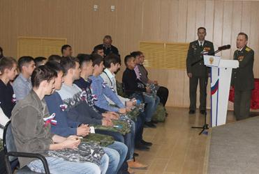 С поздравительной речью к призывникам обратился временно исполняющий обязанности военного комиссара города Байконур Владимир Садчиков, который не только поздравил призывников с таким важным событием, но и вручил родителям призывников благодарственные письма за достойное воспитание сыновей.