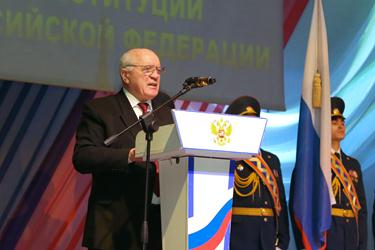 Открыл собрание Глава администрации города Байконур Анатолий Петренко. Поздравив участников торжества с праздником, он отметил, что принятая 12 декабря 1993 года на всенародном референдуме Конституция РФ, закрепила изменения, произошедшие после распада СССР, положила начало стабилизации новых государственных и экономических структур, а также провозгласила основные права и свободы человека и гражданина. В своем выступлении Анатолий Петренко процитировал слова из ежегодного послания Федеральному собранию Президента Российской Федерации Владимира Путина: «Граждане объединились - и мы это видим, надо сказать спасибо за это нашим гражданам - вокруг патриотических ценностей не потому, что всем довольны, что всё их устраивает. Нет, трудностей и проблем сейчас хватает. Но есть понимание их причин, а главное уверенность, что вместе мы их обязательно преодолеем. Готовность работать ради России, сердечная, искренняя забота о ней - вот что лежит в основе этого объединения. Мы единый народ, мы один народ, и Россия у нас одна». Анатолий Петренко отметил, что только вместе байконурцы могут вершить новые дела во имя Отчизны и нашего общего дома – Байконура. «Добросовестное использование конституционных прав и свобод человека и гражданина, выполнение обязанностей, возложенных на нас Конституцией Российской Федерации, являются залогом развития и процветания как нашего многонационального Российского государства в целом, так и Байконура в частности», подытожил Глава города.