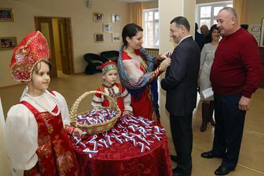 Официальная часть торжества проходила в большом зале ГДК. Открыл программу гимн Российской Федерации. Сотрудники Специального управления ФПС №70 МЧС России внесли на сцену государственный флаг России.