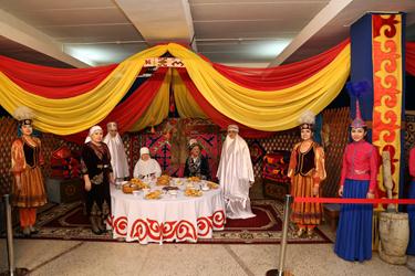 Фойе ГДК было празднично оформлено в духе национального колорита. В центре зала была установлена юрта с национальными атрибутами. Экспозицию творчества и быта казахского народа подготовили студия живописи «Мечта» (ГБУ ГДК), Музей истории космодрома Байконур, школы Кармакчинского районного отдела образования, детский сад № 22 «Гаухартас» из поселка Тюратам и акимат аульного округа «Акай». В фойе Дворца культуры была также развернута выставка книг и газет из фондов Центральной городской библиотеки.