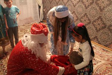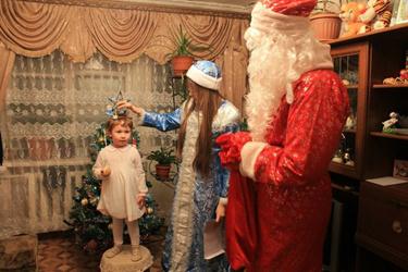 Уже с 26 декабря Дед Мороз в сопровождении своих помощников отправился раздавать первые подарки. Сколько было радости и восторга, когда на пороге своего дома ребятишки видели этого желанного гостя – Дедушку Мороза вместе со своей внучкой Снегурочкой! Нарядное платье, карнавальный костюм и новогоднее стихотворение, конечно же, не могли не растопить сердце Деда Мороза. Его рука сама тянулась в волшебный мешок, чтобы достать оттуда самый лучший подарок.