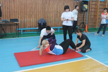 Эстафета состояла из нескольких этапов: бег на 150 м, поднимание туловища лежа на спине, отжимание в упоре лежа, метание гимнастического мяча в цель, стрельба из пневматической винтовки, завершающий этап - бег на 150 м.