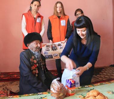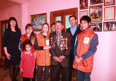 20 февраля накануне Дня защитника Отечества волонтеры Центра поддержки молодежных инициатив «Звездный кампус» и представитель совета по работе с молодежью профсоюзного комитета филиала ФГУП «ЦЭНКИ» - КЦ «Южный» посетили на дому ветерана Великой Отечественной войны, Почетного гражданина города Байконур Калмурзу Жарманова.