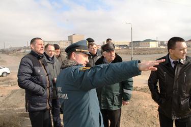 В ходе выезда был осуществлен замер уровня воды в реке, проверено наличие запаса грунта для защитных дамб, проведены смотр готовности спасательной техники и профилактическая разъяснительная работа в гаражном СК «Волна», распространены памятки по действиям при паводке среди членов кооператива, а также осмотрены защитные дамбы и пункты временного размещения эвакуируемого населения (ПВР) на базе образовательных организаций города. По результатам осмотра были составлены акты. Установлено, что русло реки Сырдарьи сковано льдом, уровень воды находится на отметке 85,4 м. (в норме); личному составу спасательных формирований задачи доведены, автомобильная и специальная техника находится в технически исправном состоянии и готова к применению по предназначению; технические сооружения «дамбы защитные» находятся в исправном состоянии; запасы грунта для восстановления технологических разрывов в профиле защитной дамбы созданы в достаточном количестве; помещения для ПВР выделены, документация администрации пункта разработана, необходимые заявки составлены.