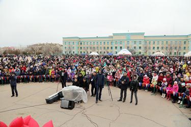 В ходе праздничной программы выступили солисты и творческие коллективы Городского Дворца культуры. Своими яркими вокальными и хореографическими номерами порадовалигорожан Торебек Кожабаев, Айгуль Тажимбетова, Мархаббат Телеуова, Роза Рзаева, Айнур Султаева и коллектив современного танца «Престо». Вместе с вокалистами Дворца культуры зрители исполнили попурри из популярных казахских песен. Горожане также с удовольствием приняли активное участие и в танцевальном флешмобе. Финальным аккордом праздника стала песня «Наурыз» в исполнении солистов ГДК.