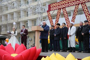 Официальную часть торжества открыл Глава администрации города Байконур Анатолий Петренко. Он поздравил байконурцев и гостей города со старинным весенним праздником и отметил, что на Байконуре его вместе отмечают и казахстанцы, и россияне, и представители других государств. «Праздник Наурыз не признает различия по национальностям, культурам, религиям. Мы едины, мы вместе работаем, мы вместе живем, мы смотрим вперед, и мы достигнем своих целей для строительства лучшей жизни для всех нас. Крепкая семья, честный труд, любовь к родине - вот что нужно всем нам и особенно нашей молодежи», - подчеркнул в своей речи Глава города.